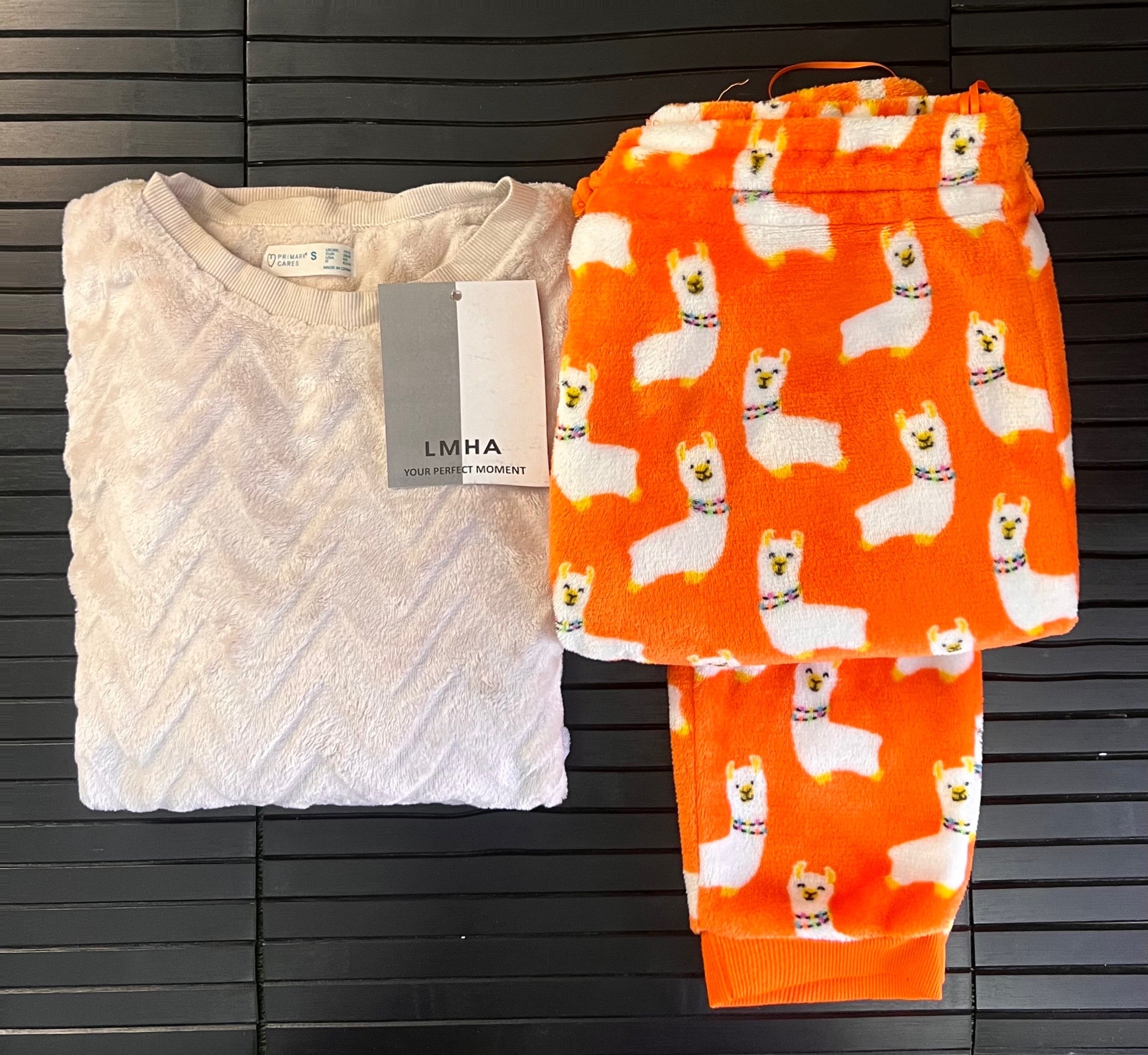Designed for ultimate coziness, the set includes a snugly fitted long-sleeve top and full-length trouser.