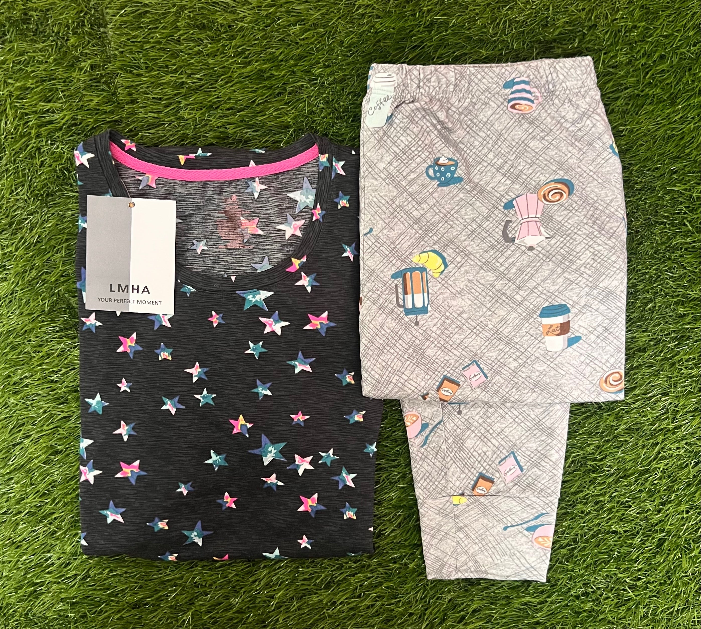 The long tee provides a relaxed, cozy fit perfect for lounging, while the matching pajama bottoms ensure all-day ease and style.
