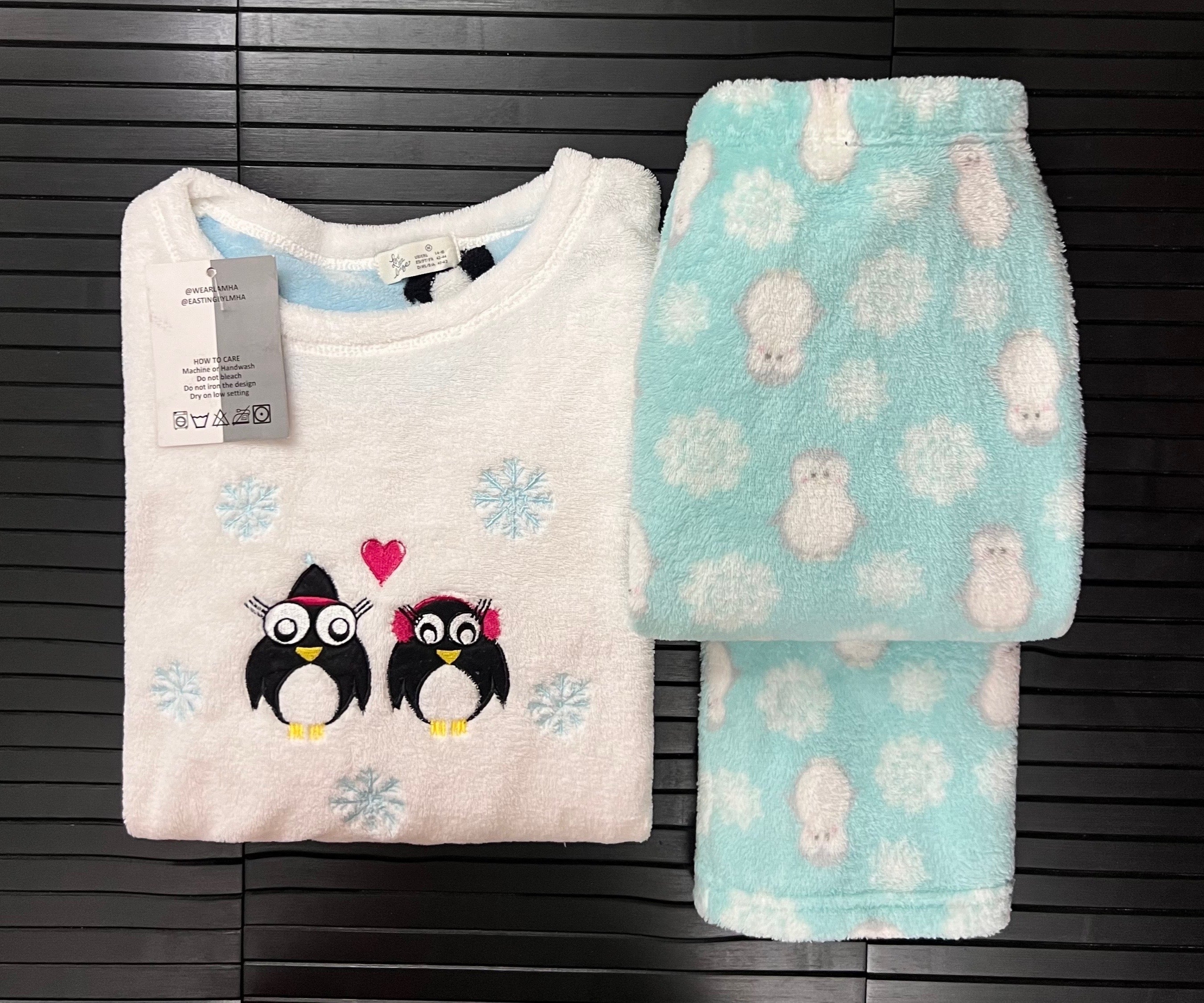 Snuggle into winter with full-sleeved snugly fitted long-sleeve top and a full-length trouser.