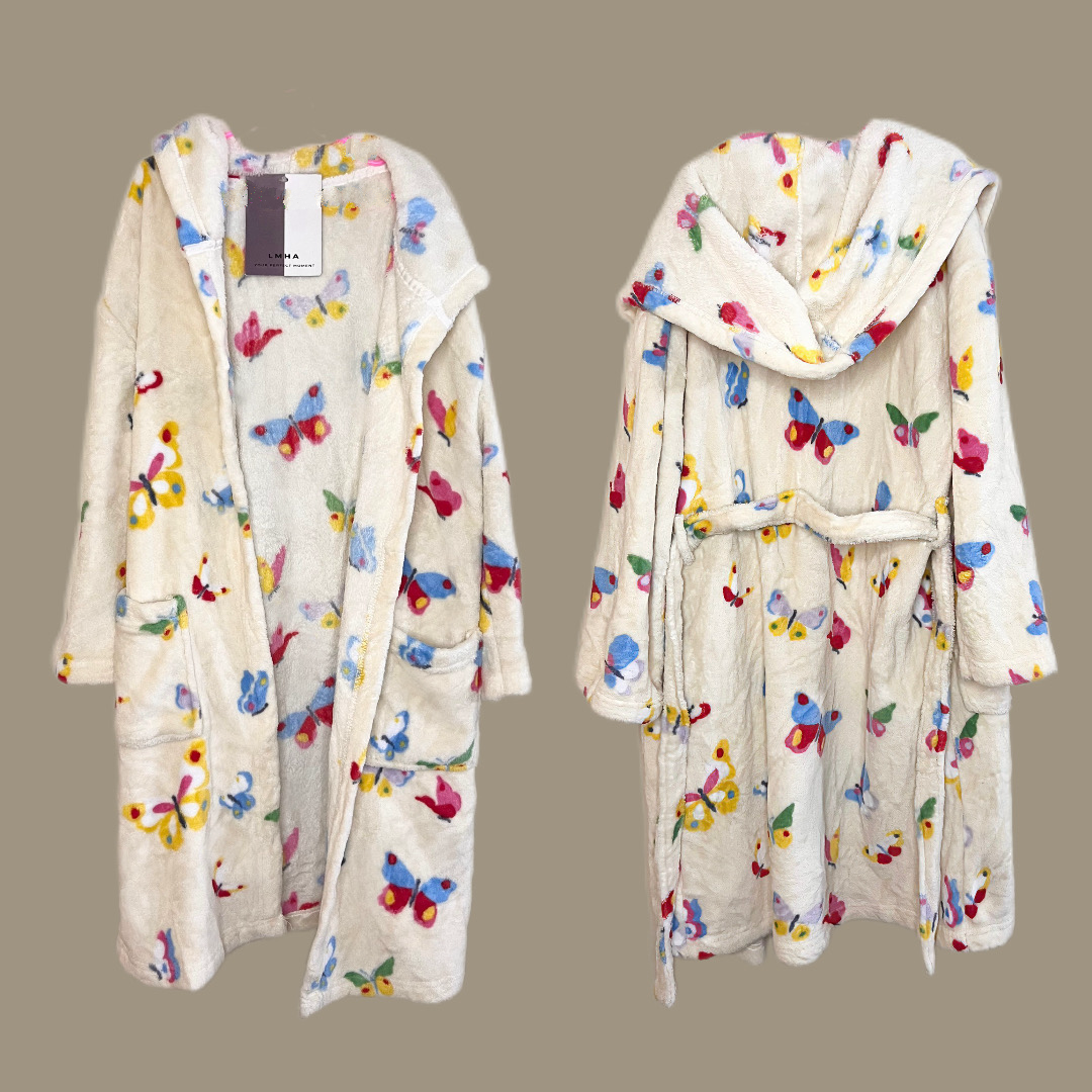 Its plush fabric feels like a gentle hug, keeping kids toasty without overheating. With deep pockets, a belt, and playful prints, it's perfect for lounging, layering, or post-bath cuddles.