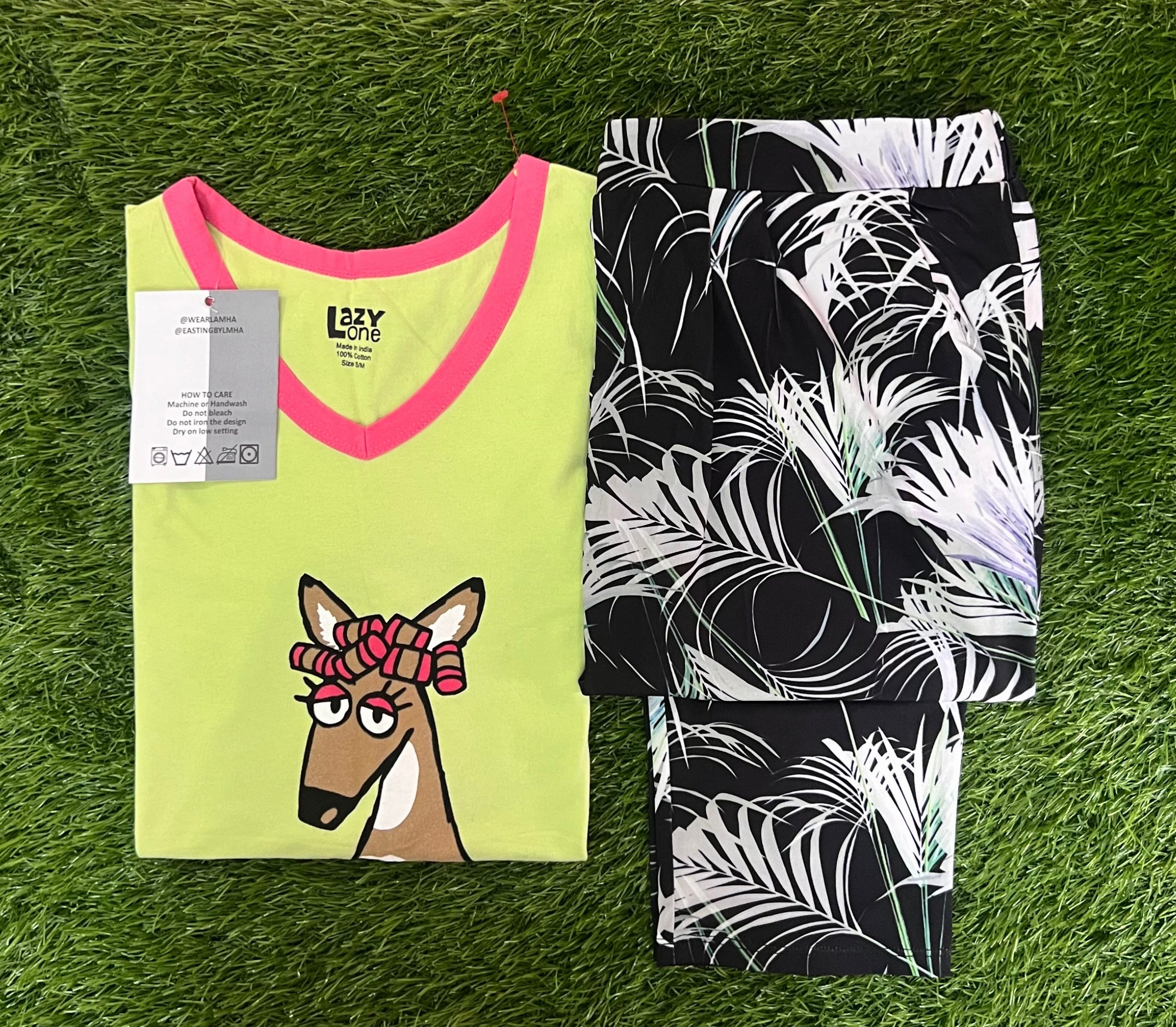 The long tee provides a relaxed, cozy fit perfect for lounging, while the matching pajama bottoms ensure all-day ease and style.
