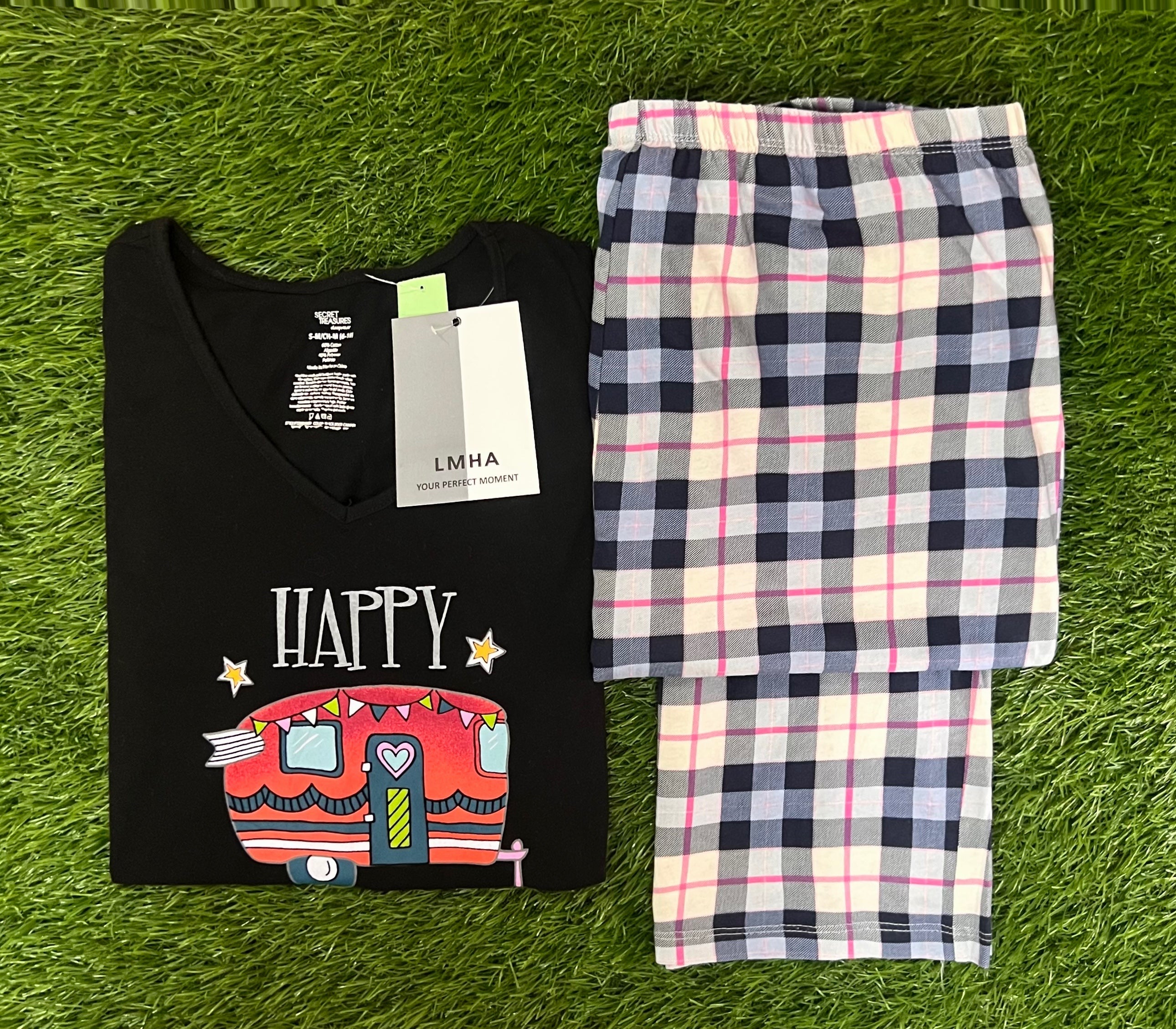The long tee provides a relaxed, cozy fit perfect for lounging, while the matching pajama bottoms ensure all-day ease and style.