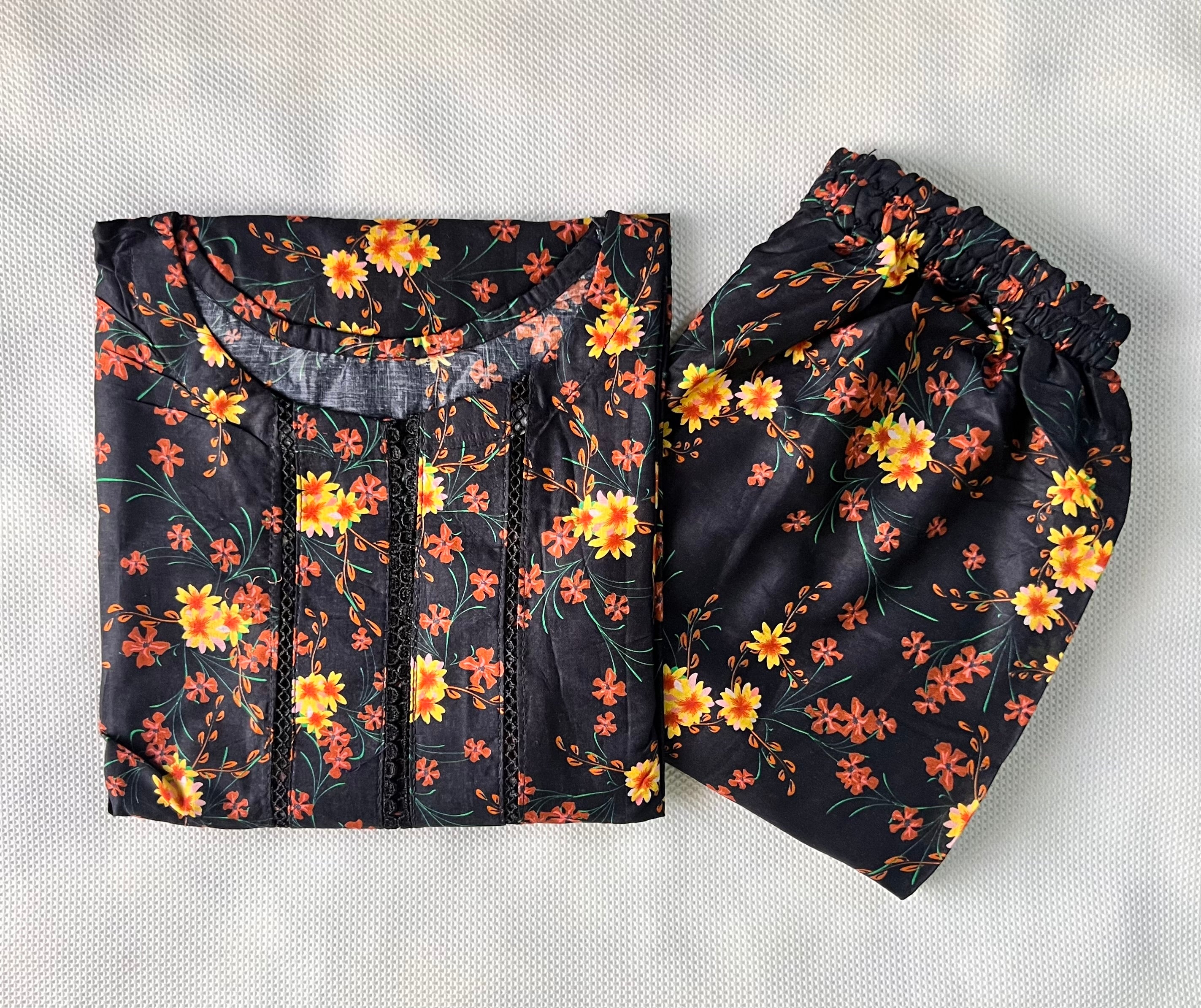 This dress features a black neck design, with laced detailing on the sleeves and bottoms.