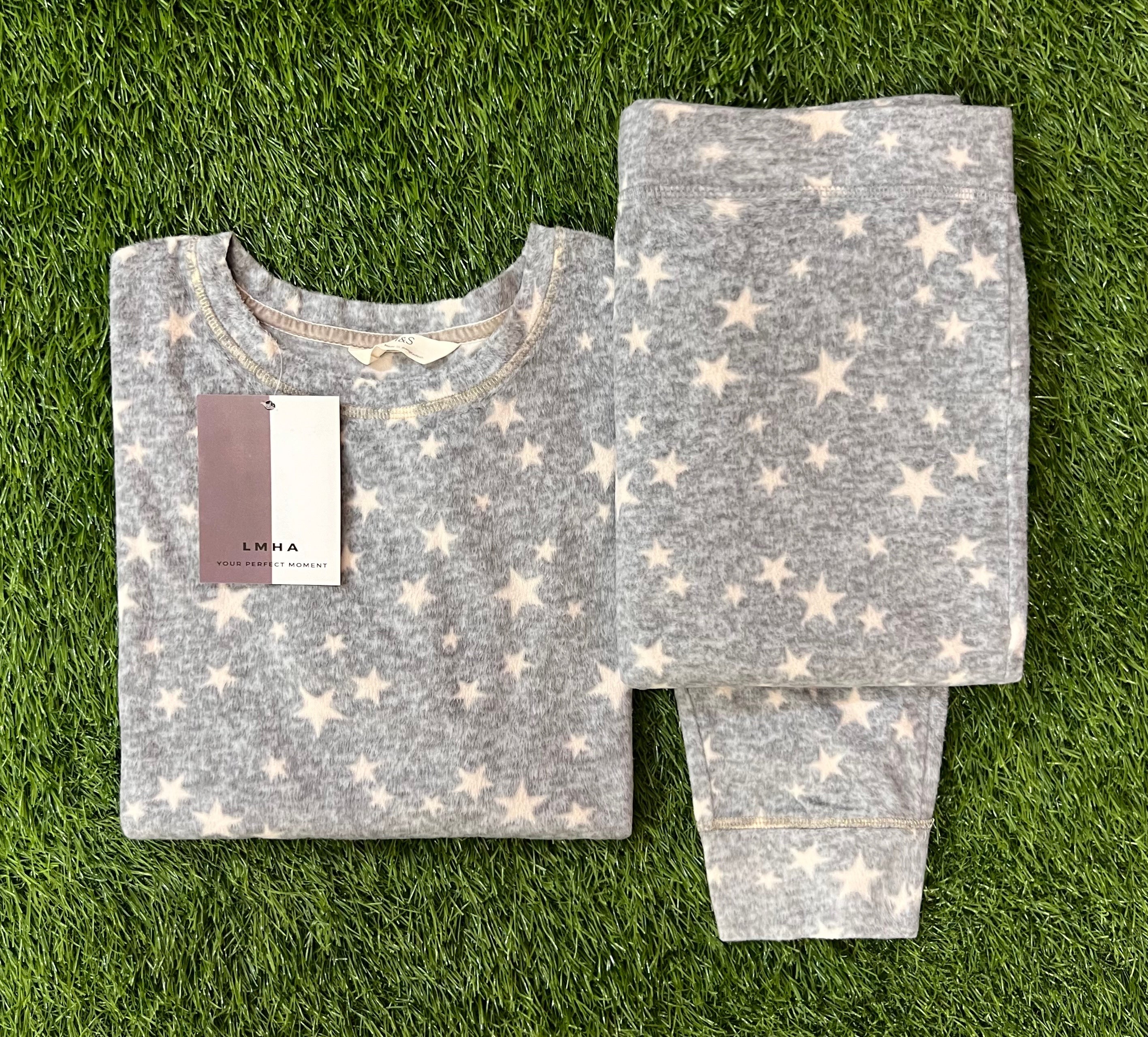 Designed for ultimate coziness, the set includes a snugly fitted long-sleeve top and full-length trouser.