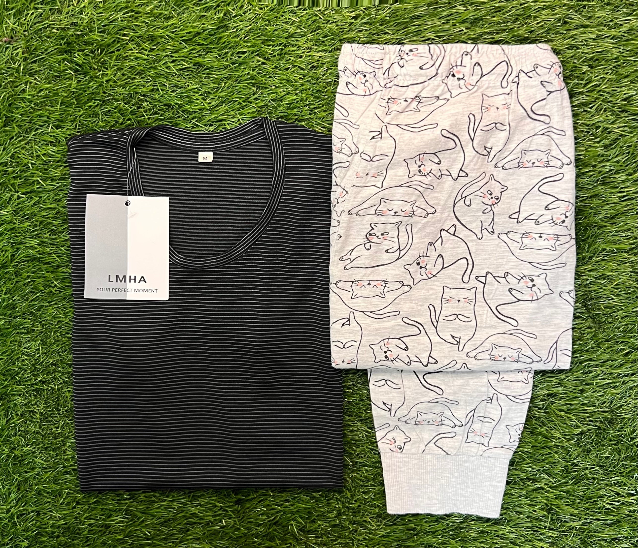 Beat the heat with this cotton pajama set, tailored for effortless comfort. The half-sleeve top pairs perfectly with the breathable fabric, making it the ultimate pick for warm evenings. Stay cool, stay relaxed, stay in style.