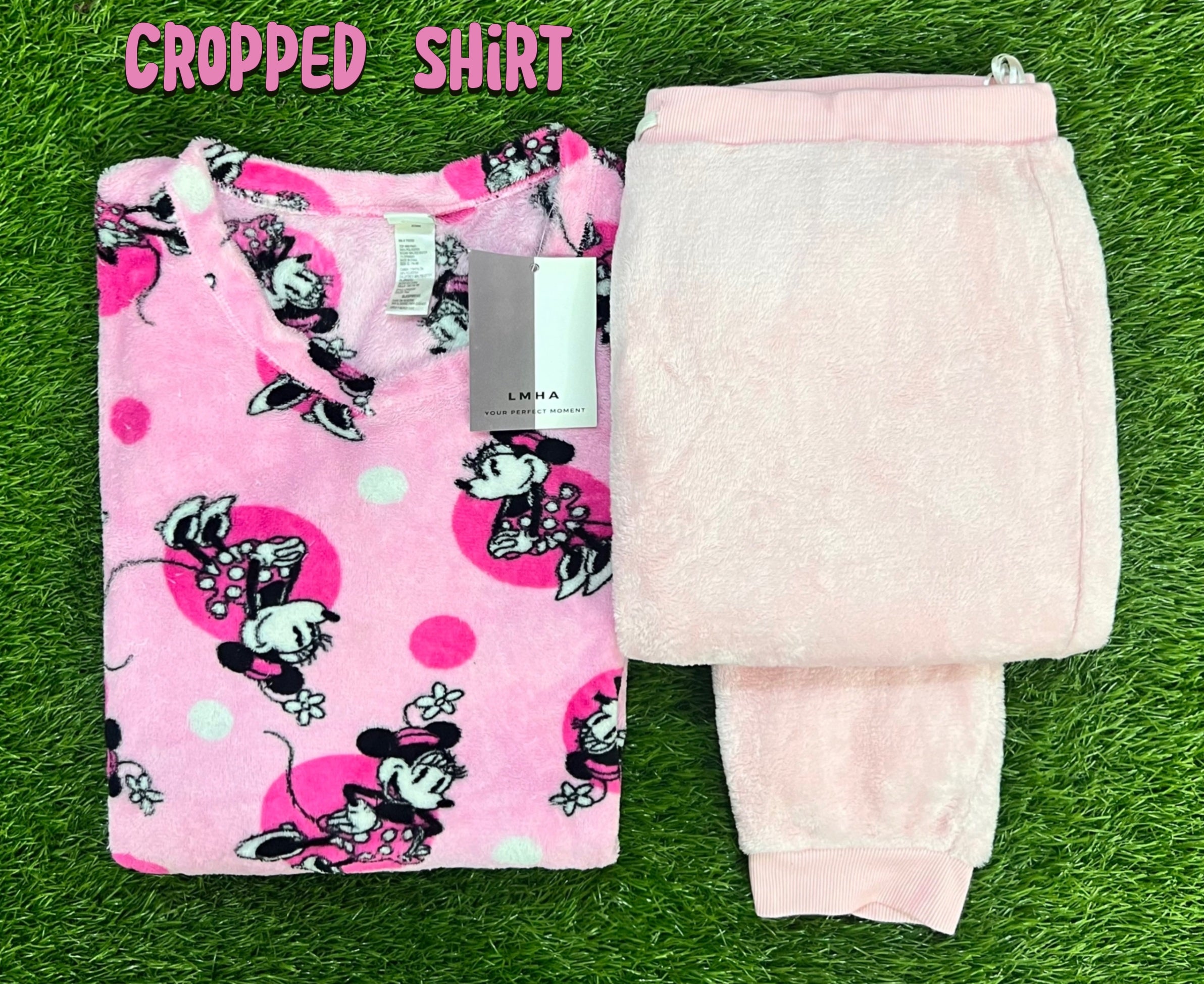 Designed for ultimate coziness, the set includes a snugly fitted long-sleeve cropped shirt and full-length trouser.