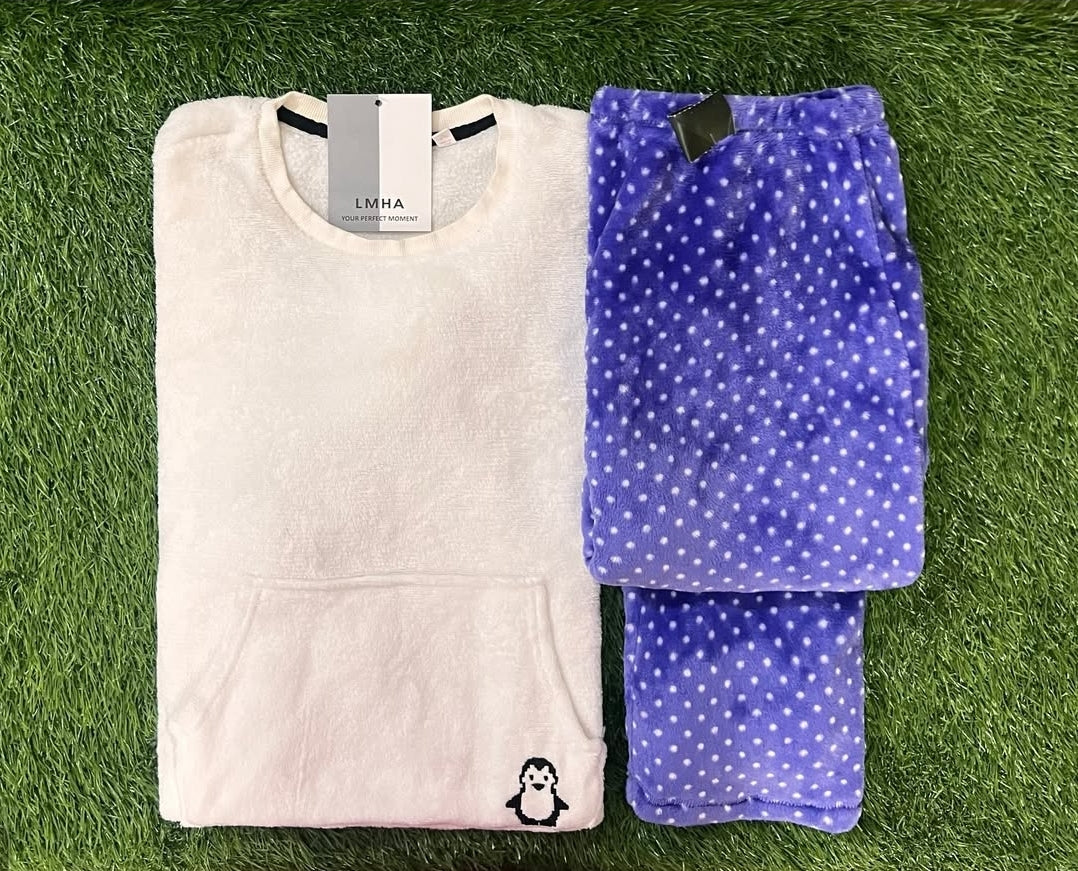 Designed for ultimate coziness, the set includes a snugly fitted long-sleeve top and full-length trouser.