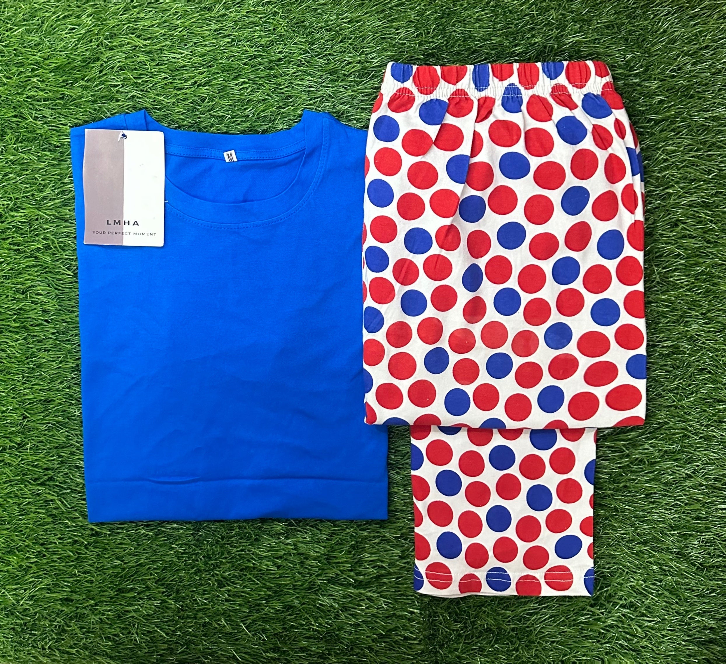 Beat the heat with this cotton pajama set, tailored for effortless comfort. The half-sleeve top pairs perfectly with the breathable fabric, making it the ultimate pick for warm evenings. Stay cool, stay relaxed, stay in style.