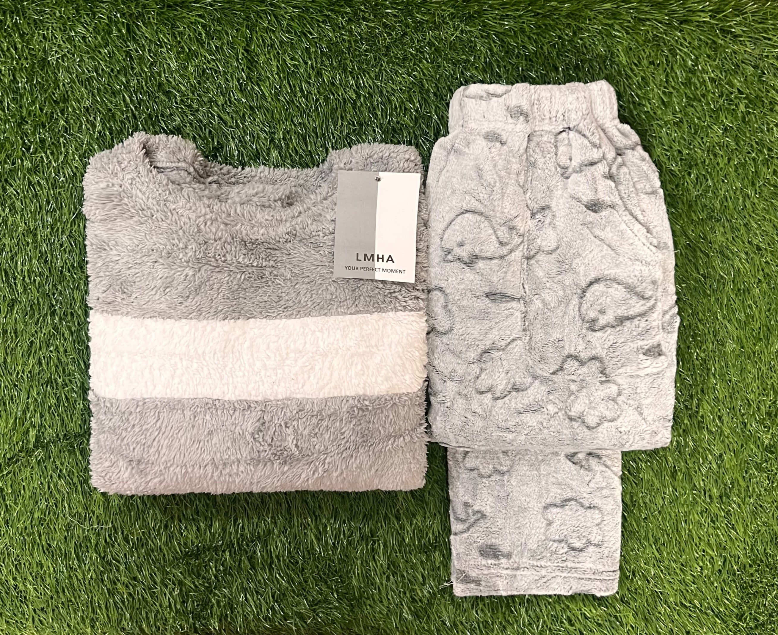 Designed for ultimate coziness, the set includes a snugly fitted long-sleeve top and full-length trouser.